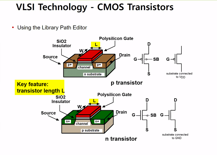 반도체 공정에서 몇 나노공정에서의 나노에 해당하는 것은 length이다. souce - drain사이의 폭을 length라 한다