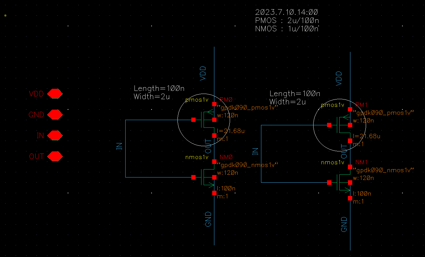 P-spice에선 칩을 시뮬레이션하지만 소자의 L/W비율을 조절할 수 없다 (기존의 만들어진 소자만 사용가능)
