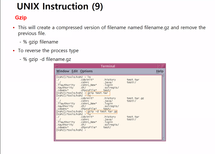 알집보다 더욱 높은 압축 -> gzip -> gzip은 유닉스에서 만든 압축이다.