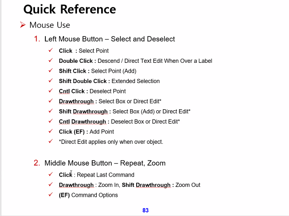 오른쪽 마우스 누르면 자주 사용하는 명령어 창이 뜬다.