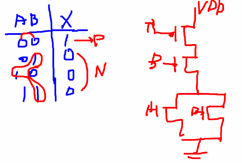 진리표에서 출력 0은 NMOS, 1은 PMOS와 관련있다.