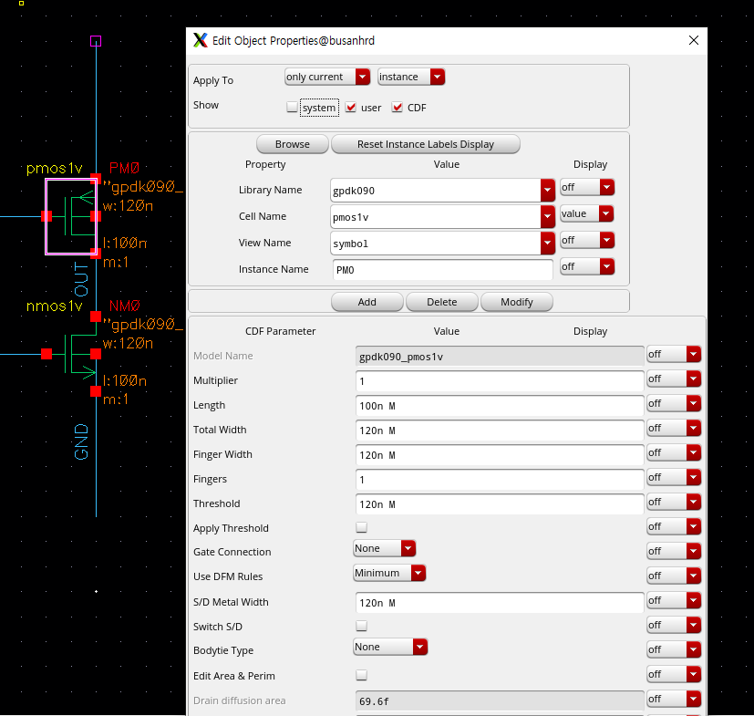full custom에선 L/W의 비율을 조절할 수 있다 -> 칩스페이 맞을떄 까지 진행