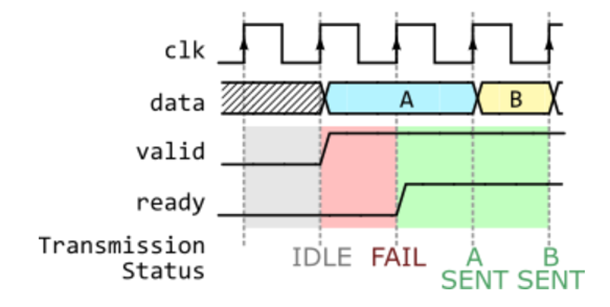 - 송신자의 Valid와 수신자의 Ready 신호가 high인 상태에서 Data 전송